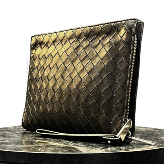 Veneta Intrecciato Large Flat Pochette In Black